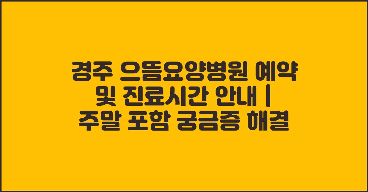 📌 경주 으뜸요양병원 예약 및 진료시간 안내