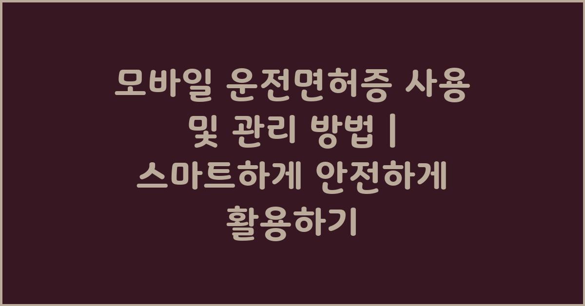 모바일 운전면허증 사용 및 관리 방법 | 안전하고 편리하게, 이러한 디지털 전환을 통해 우리는 더 많은 기회를 얻고 있습니다. 이러한 혁신은 앞으로도 계속될 것이며, 우리 사회의 전반적인 환경을 변화시킬 수 있을 것입니다.