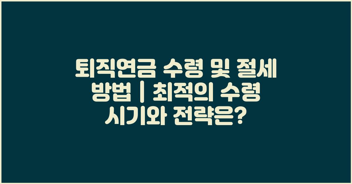 1. 퇴직연금을 언제 어떻게 수령하는 것이 가장 좋은가요?