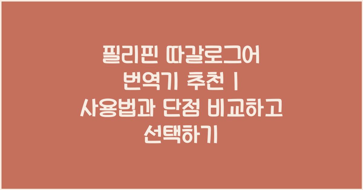 하지만 이 번역기가 주는 모든 장점만 있는 것은 아닙니다. 사용자 경험을 통해 알게 된 것은, 번역의 정확성이 항상 보장되지 않는다는 점이었습니다. 시간에 따라 변화하는 언어적 맥락을 제대로 반영하지 못할 때도 많거든요. 그래서 이번에는 필리핀 따갈로그어 번역기 추천 | 사용법 및 장단점 비교를 통해 자세히 알아보겠습니다.