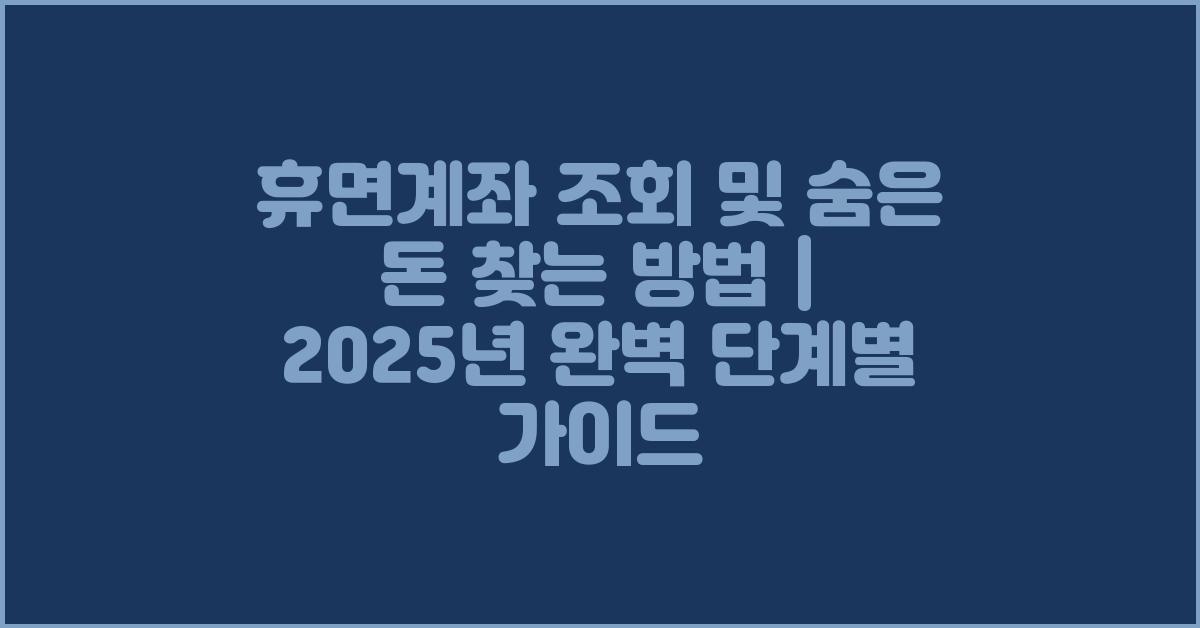휴면계좌 조회 및 숨은 돈 찾는 방법 정리 ✔️
