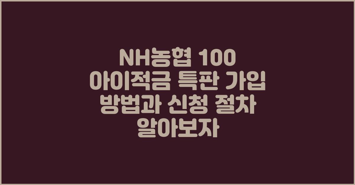 특히, NH농협 100 아이적금 특판은 높은 이자율과 다양한 혜택으로 많은 가정에서 주목받고 있습니다. 아이의 이름으로 계좌를 개설하고 저축을 통해 아이의 꿈과 필요를 지원할 수 있다는 점에서 부모님들에게 귀중한 선택이 될 것입니다. 누구나 쉽게 가입할 수 있는 이 상품은 어린 자녀를 둔 가정이라면 꼭 고려해봐야 하는 초대형 금융 혜택이죠.